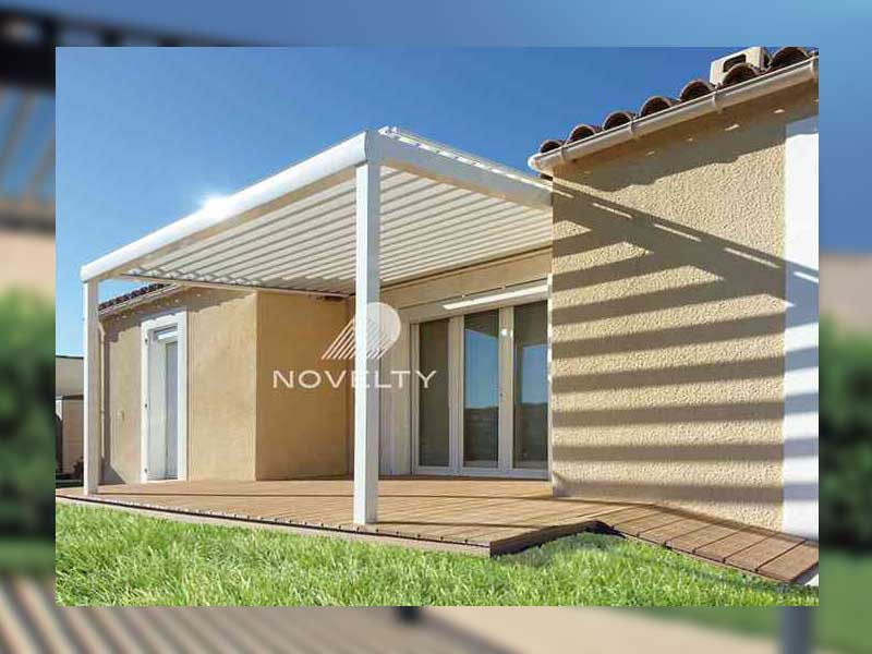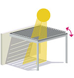 CLIMATIK es la pérgola bioclimática de NOVELTY que incorpora un innovador sistema de protección solar y pluvial para disfrutar del aire libre durante todo el año. Sus lamas orientables de aluminio proporcionan una solución perfecta tanto para protegerse de la lluvia como para crear un acogedor espacio de sombra en días calurosos. Con un exclusivo y elegante diseño, CLIMATIK ofrece una integración arquitectónica excelente en cualquier tipo de instalación, tanto para espacios particulares como profesionales: jardines, terrazas, patios privados…